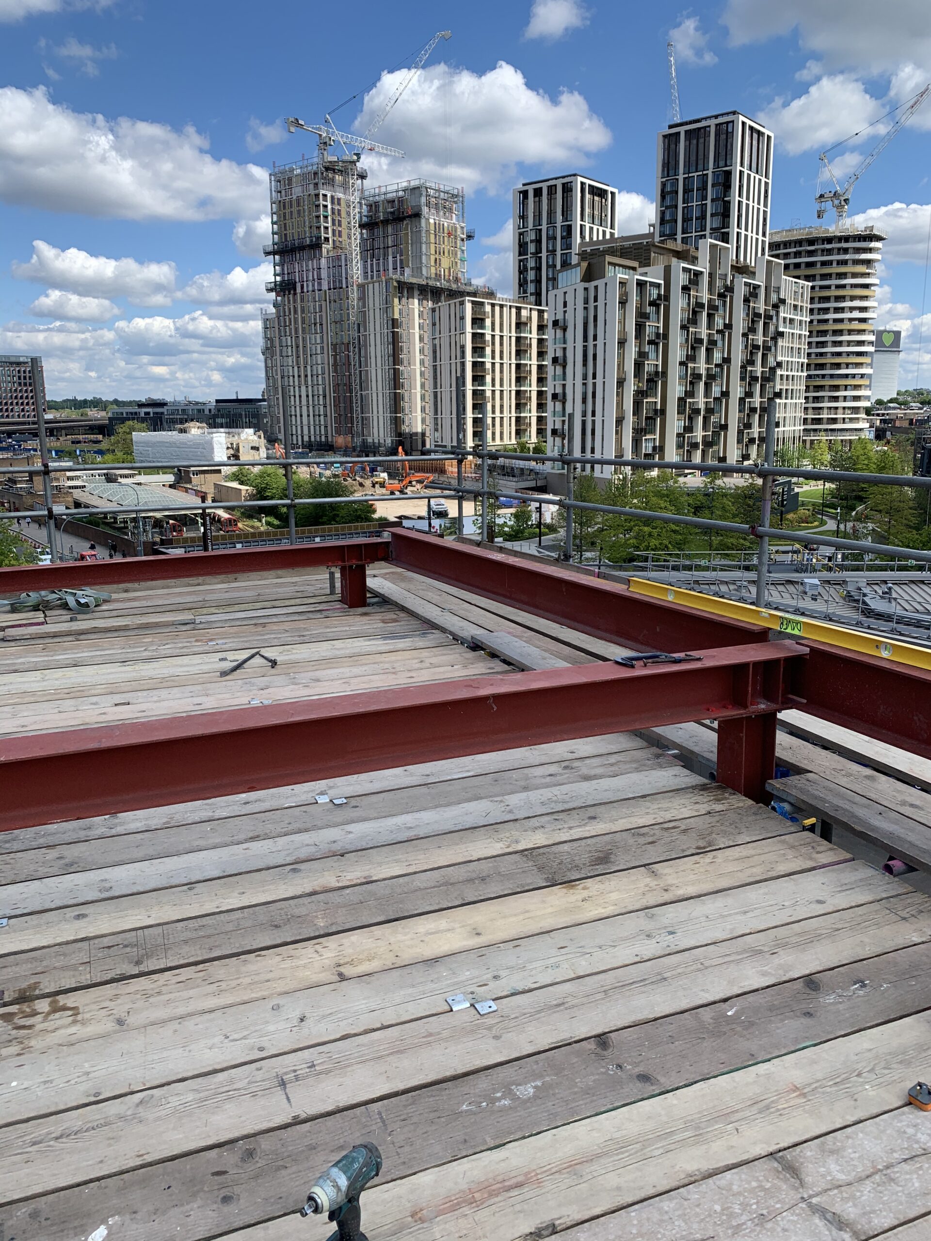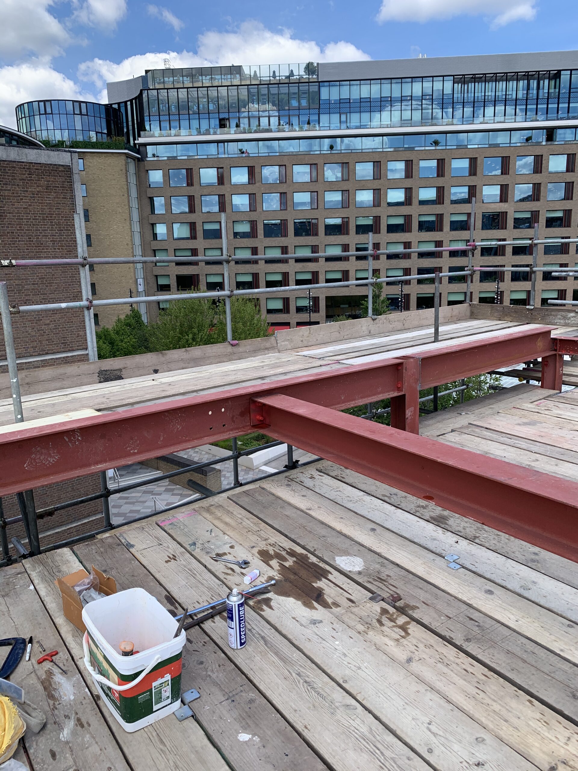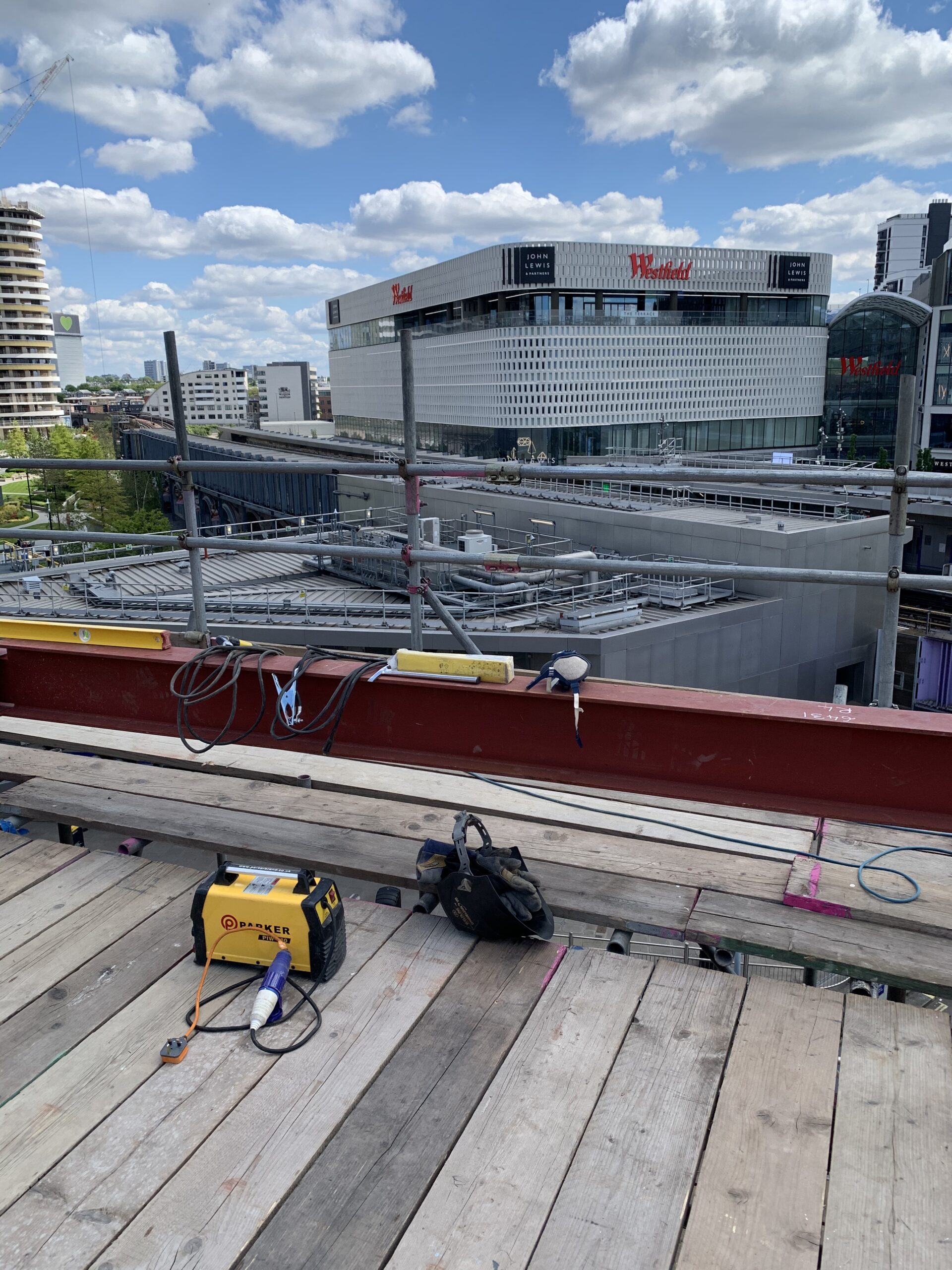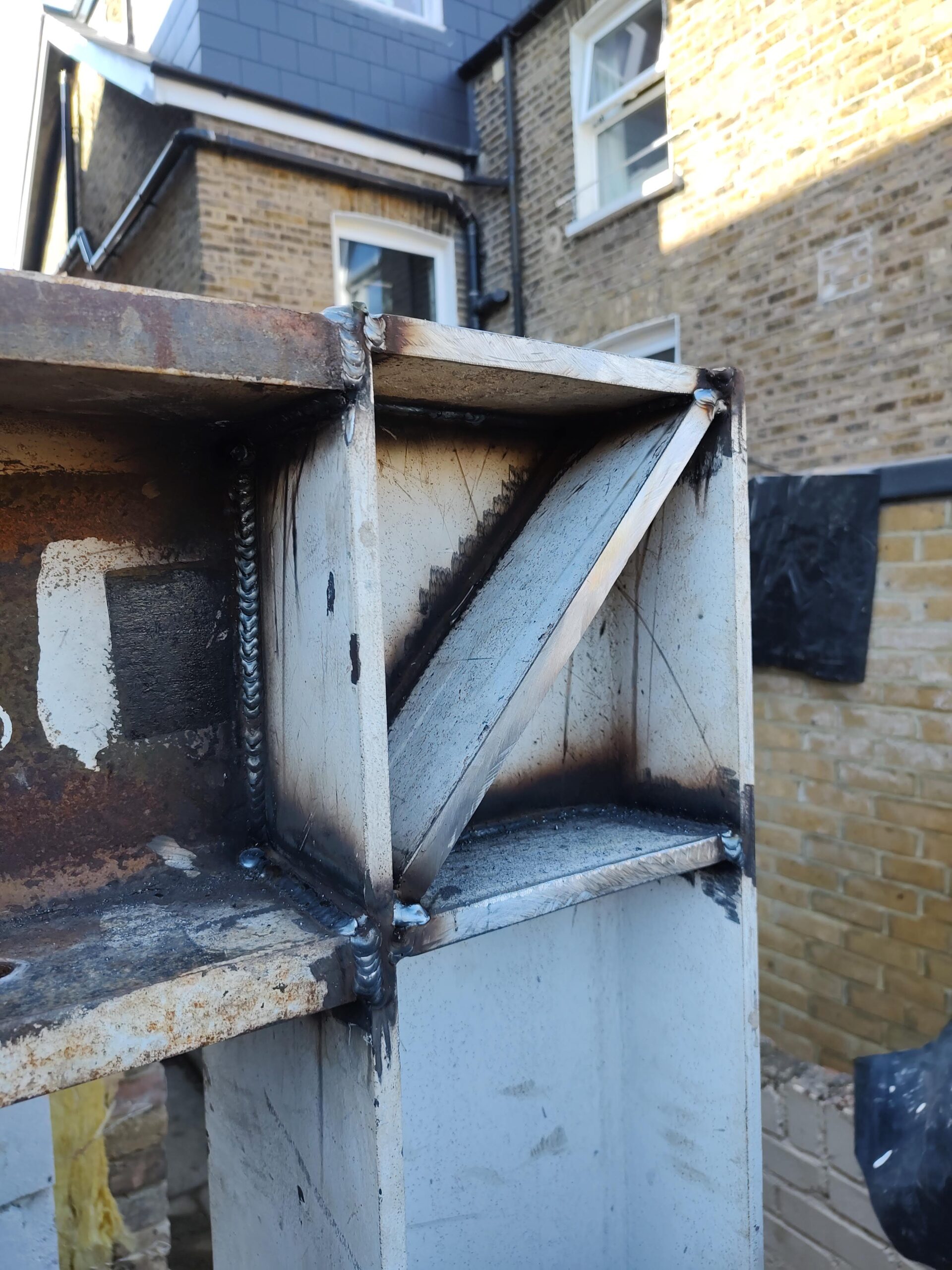 Welding of structural steel beams for construction support